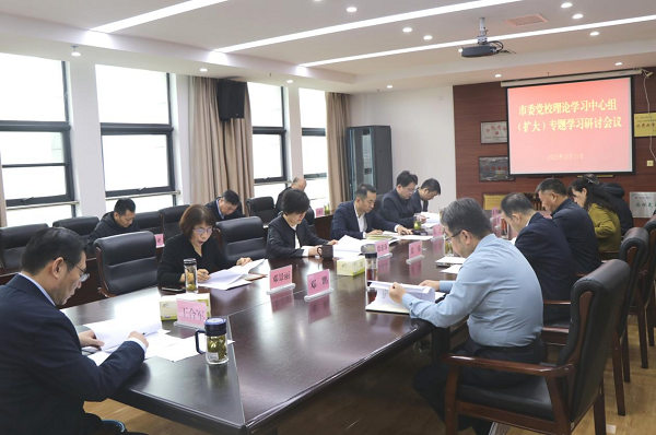 10月11日上午,市委党校召开理论学习中心组(扩大)专题学习研讨会议。常务副校长王合军主持会议,校委委员、各处室负责人、四级调研员参加学习研讨会。